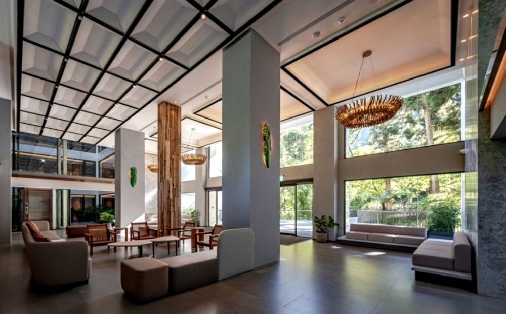 整間飯店裝潢充滿奢華細節,從外牆到大廳空間皆以頂級抗老創世紀原晶系列為靈感,搭配低調奢金質感咖金元素,讓飯店內外散發高級氛圍。踏入客房後更能感受到金屬與原木結合典雅設計,部分房型還能遠眺台北101,見證城市白天與夜晚的變化,打造靜謐旅宿時光。