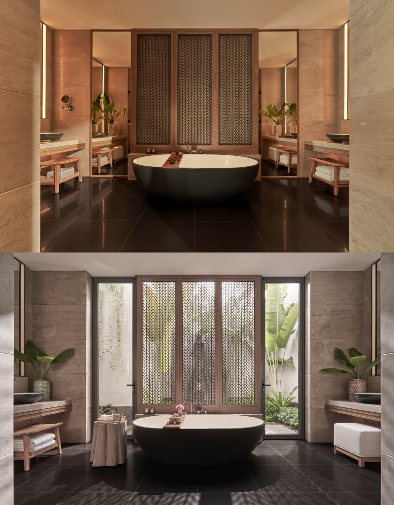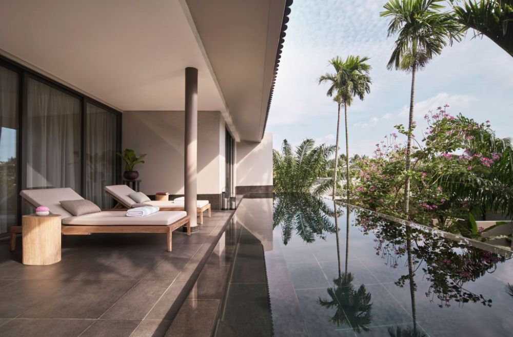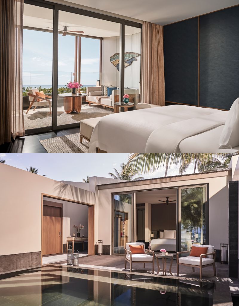 麗晶建築與設計通過BLINK DESIGN GROUP生動呈現。度假村176間套房與126棟別墅融合傳統越南美學與當代室內設計風格,創造室內外空間無縫銜接和諧氛圍。別墅設計靈感源自越南GIAN NHA概念,建築佈局以庭院為中心,每棟別墅均配備私人泳池,確保賓客在寧靜奢華環境中盡享私密。