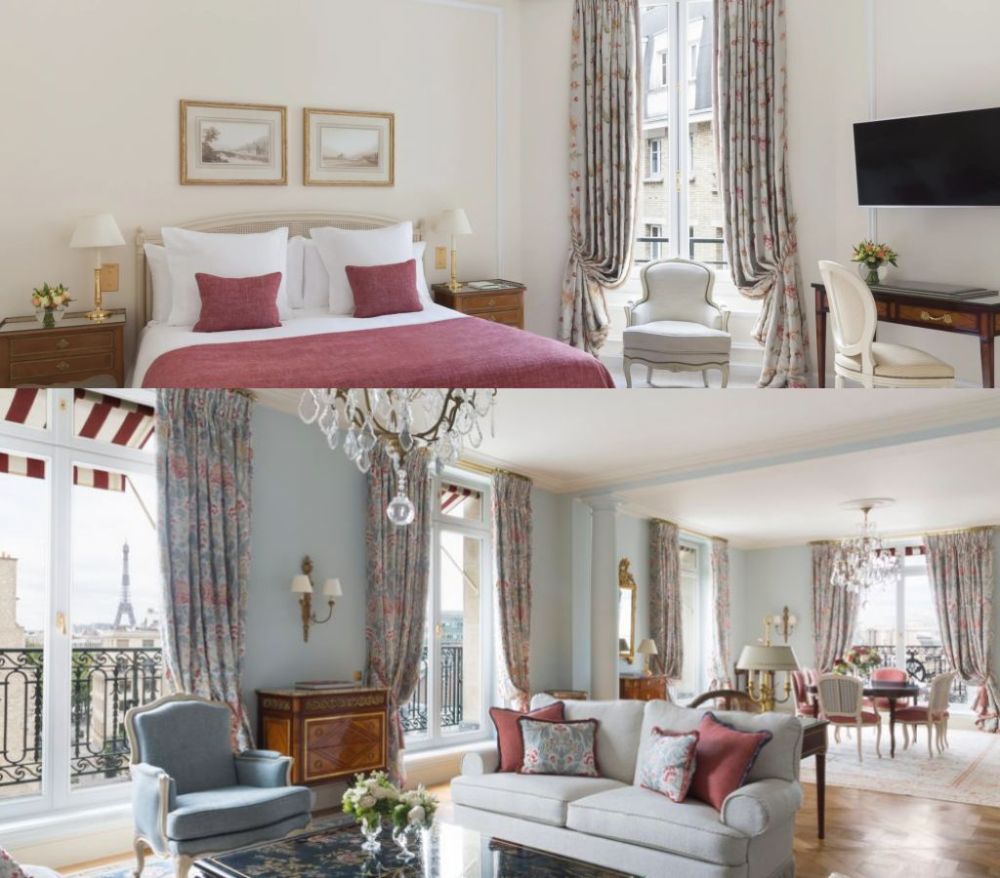 2個最具代表性套房在Elvira與Narcisa Oetker主導下進行華麗宮殿文化的重新翻修。經典蜜月套房(THE SIGNATURE HONEYMOON SUITE)在頂樓屋簷可眺望艾菲爾鐵塔;簡單現代設計彰顯迪米特里雷巴爾琴科(Dimitri Rybaltchenko)以愛神與普賽克神話為靈感創作的壁畫,提升整個空間浪漫氛圍。