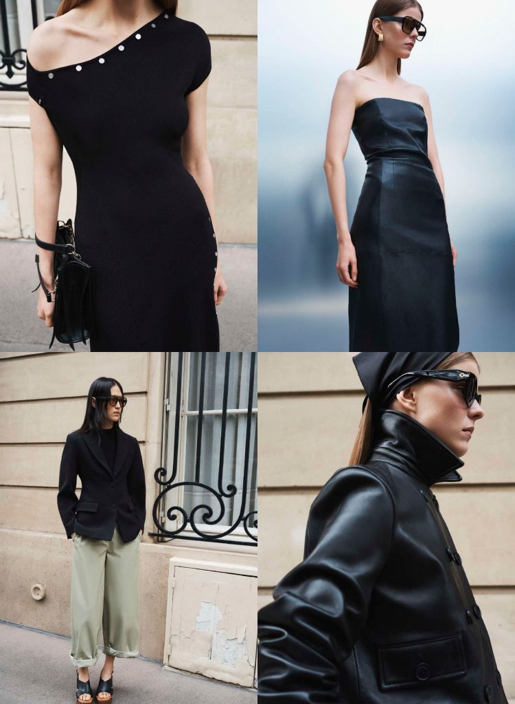 2025早春新品時刻展現自信魅力,體現大膽前衛法式優雅魅力,白天穿上剪裁俐落彈力皮革貼身連身裙,令人驚豔。夜晚換上仿古細節闊腳牛仔褲、流蘇開胸外套與平底鞋。