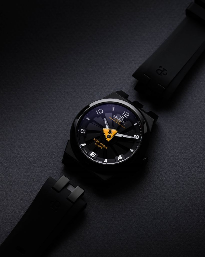 瑞士百年製錶PERRELET沛力錶攜手法國鐘錶設計鬼才SECONDE/SECONDE/,共同打造充滿幽默自嘲意味全新TURBINE旋風系列限量腕錶,一件可以隨身攜帶的藝術品,全球僅限量25只。