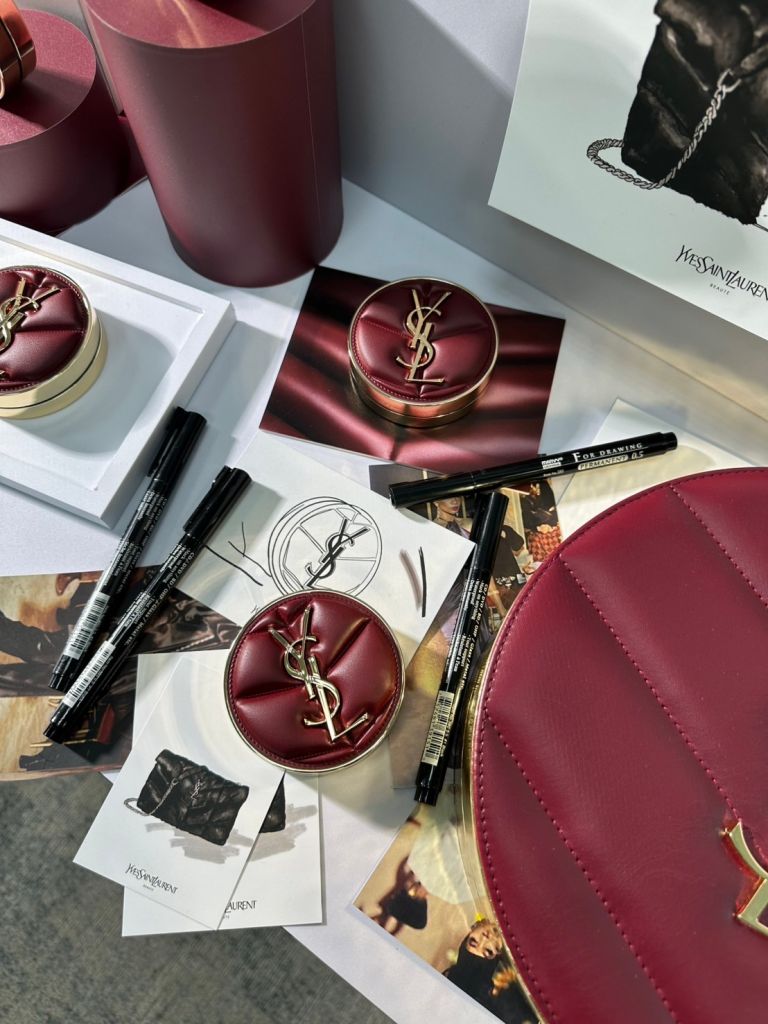質感勃根地酒紅色與雲朵般澎彈柔軟皮革氣墊演繹YSL女人個性態度與法式時尚靈魂,深邃奢華且自帶神秘氣息,彷彿藏著一抹時間沉澱韻味,構築出性感又高奢視覺張力,完美契合SAINT LAURENT精神—華麗而不浮誇,神秘而不疏離,性感且帶有不羈態度。