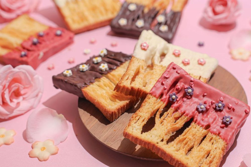 晶華酒店西點團隊特別推出花季限定商品花漾糖烤千層吐司,白巧克力、黑巧克力及莓果巧克力3種風味妝點精緻手工糖烤千層吐司,金黃酥脆吐司結合甜蜜裹醬,完美呈現春季小花園雅緻氛圍,賞花巴士搭配糖烤千層吐司讓行程更添色彩。