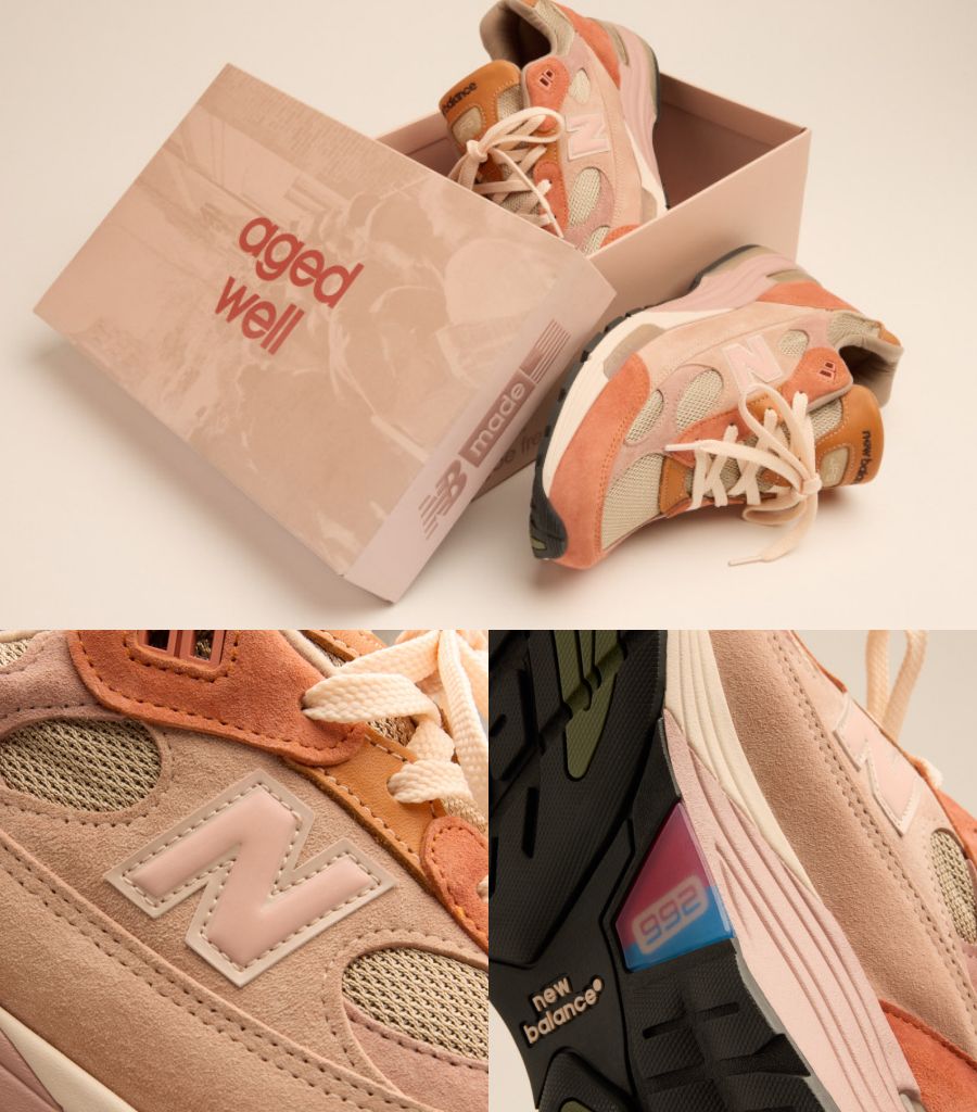 AGED WELL 992設計靈感來自雙方首度合作“NO EMOTIONS ARE EMOTIONS” 992,透過褪色效果呈現歲月淬鍊獨特質感。鞋款標誌著雙方合作5周年重要里程碑,延續2020年至今共同打造10個企劃、創造20雙聯名鞋款輝煌歷程,歲月沉澱,復古色調詮釋經典,重塑球鞋潮流新貌。