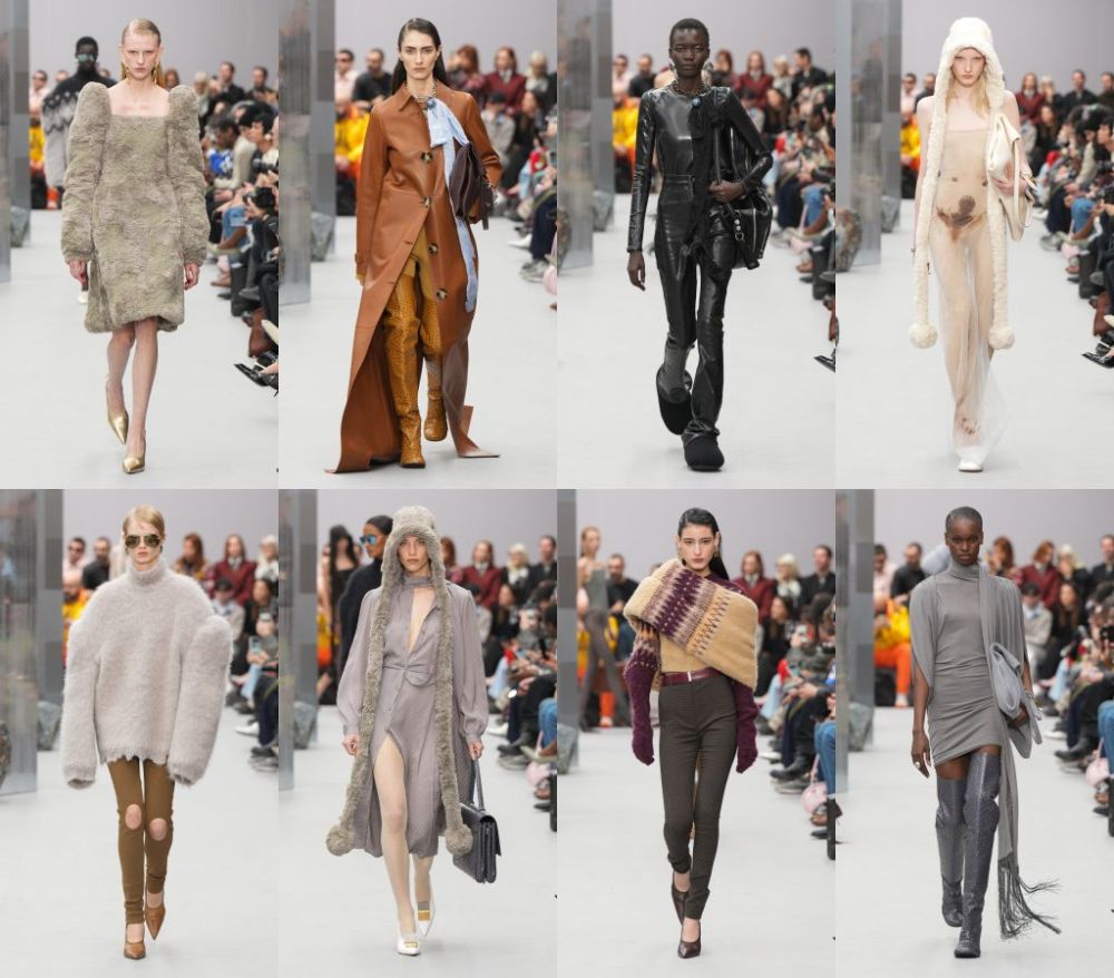 ACNE STUDIOS 2025秋冬系列兩個世界的動態並置;對比美學的深刻探索。女裝外套與西裝剪裁更趨柔和,袖子與肩線呈現圓潤輪廓。部分設計呼應權力套裝結構感,部分單品展現更隨性風格。