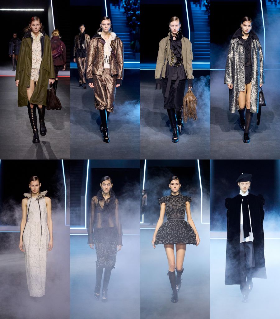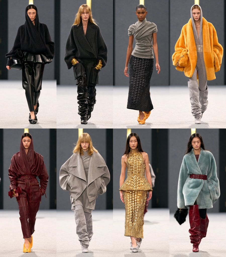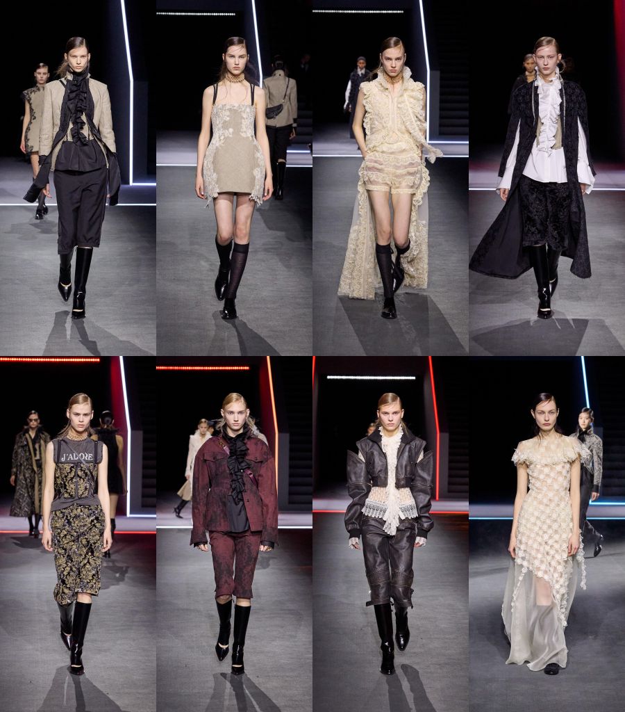 時間沉澱賦予作品在不斷交錯靈感之間變化,承載身體印記與當代渴望。 透過探索時尚的故事與演變,秋冬系列女裝是一種參想未來的女性特質,融合過往意象,並將歷史與現下時裝更緊密地聯繫在一起。