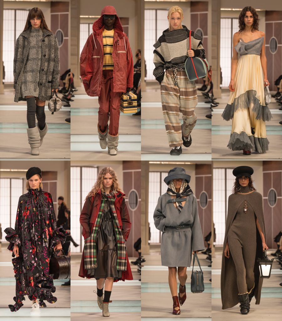 大量以紳士DANDY為丹迪風格為主,毛絨、毛氈等元素加入經典BIRKIN、PICOTIN手袋,結合同色調皮革與毛絨元素,打造出剛柔並濟照映,反映拼接工藝的作品,賦予整體造型豐富層次感。