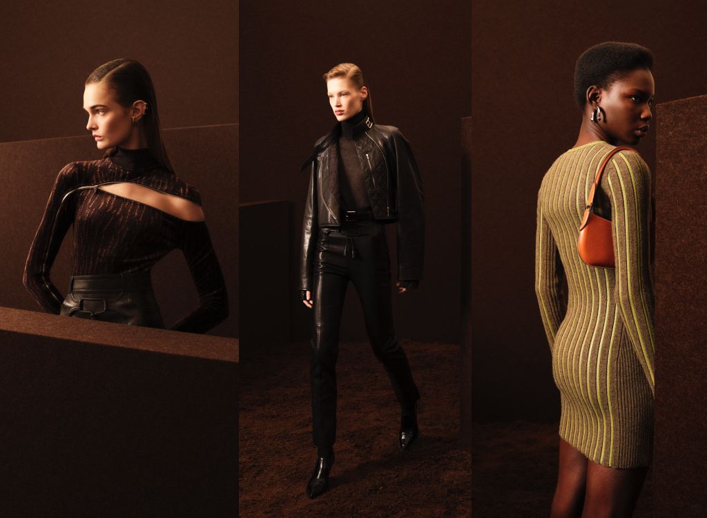 機能性毛氈如皮革般柔滑流動。大膽的小羊皮拼接設計既可以鈕扣收起、或以拉鍊釋放──流暢且直率。牛仔布與皮革交織,相互支撐。喀什米爾與絲質高領毛衣在山羊皮雙排釦短外套之下優雅挺立。