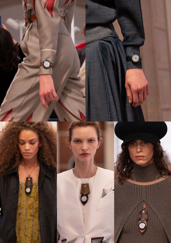 2025秋冬女裝大秀上1988年LV II歷史腕錶以5款造型回歸,並在會場獨家展出。腕錶為黑色或綠色陶瓷錶殼,直徑37毫米,路易威登鐘錶製造(Louis Vuitton Horlogerie)石英機械機芯,具備日期、鬧鐘、小時、分鐘及秒功能,可作為精緻配件佩戴在手腕或頸上,體現LV珍視的旅行精神。