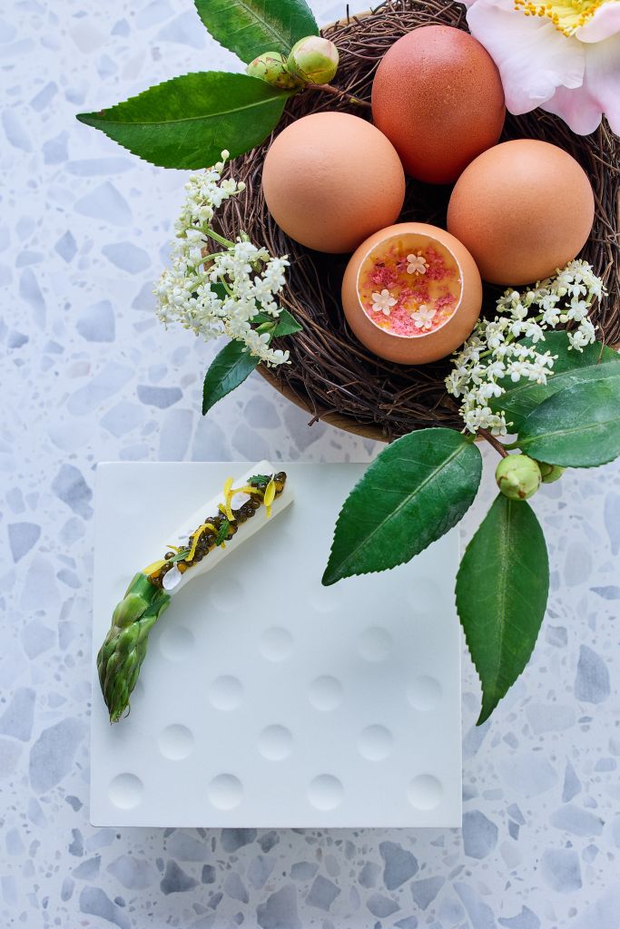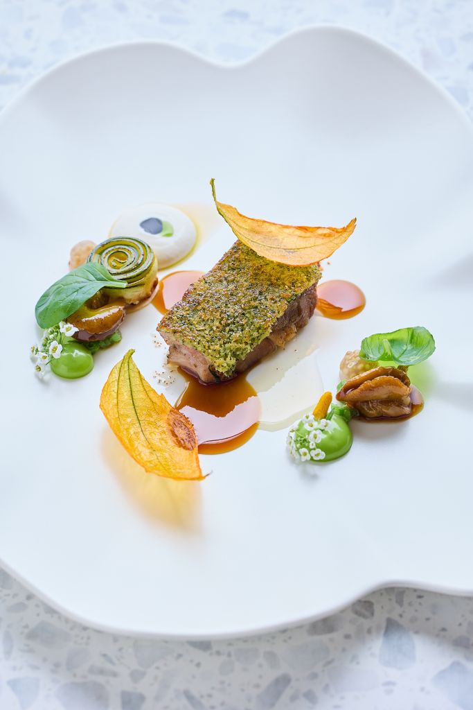《根莖花語》延續Chef Alain在春季料理"植物力"主題,每一道餐點都將完整利用同一株植物的根芽、莖葉、花朵等元素,將自然生命力的獨特風味帶入餐盤菜肴,實踐食材零浪費之餘,也突破創意邊界獲得全球"食"壇關注,也成功入選世界最佳50餐廳創立的餐飲指南"50 Best Discovery”年度全球關注餐廳。