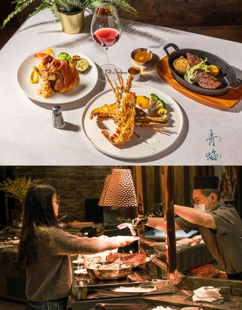 苗栗金鬱金香酒店青焰炭火熟成牛排營造高雅大方用餐氛圍,主打各式優質排餐搭配自助餐檯,提供炙燒牛排、焗烤龍蝦、現切生魚片、手工冰淇淋甜點等高品質餐點,強調新鮮食材與現場烹調,可享用數十道富含各國風味佳餚,也可只選擇自助吧。
