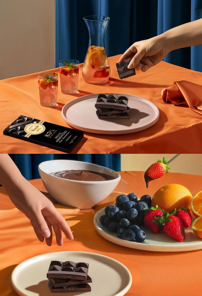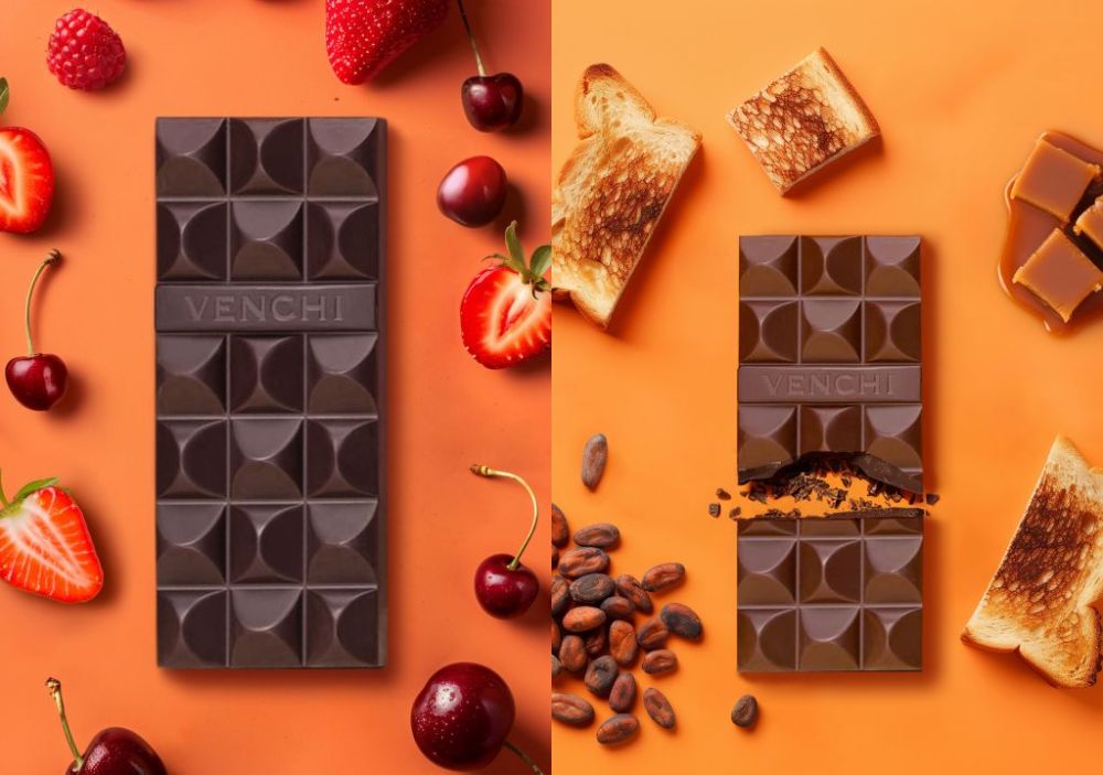 VENCHI“9重黑巧克力片系列”橫跨60~100%可可濃度,全面展現頂級可可多層次風味與健康訴求。每款巧克力都選用自加勒比天然甘蔗糖與精心烘焙可可豆,呈現極致風味與口感。從入口柔和、帶花果香氣到100純黑深邃味道,能滿足每位黑巧克力愛好者對極致風味的追求。