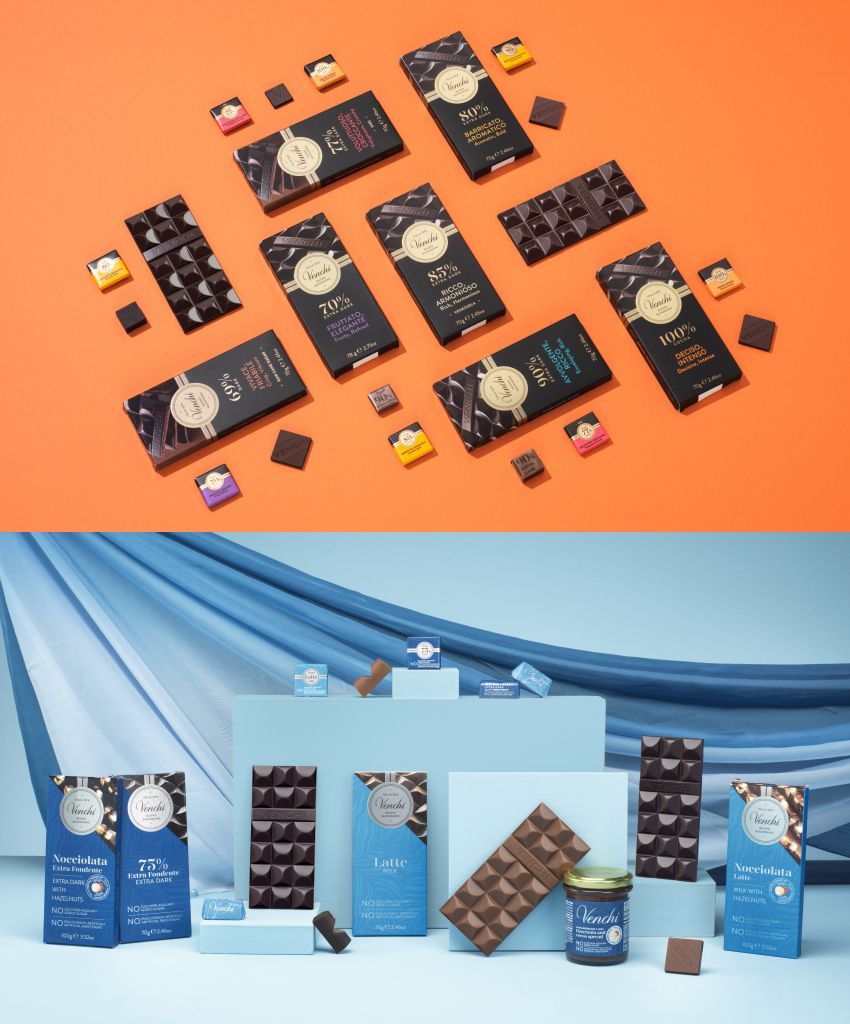 「我們賣的從來不只是巧克力,而是一種義式生活體驗,一種能讓人微笑、共享的甜蜜時刻。」VENCHI選用可可豆來源及發酵、日曬、烘焙、精煉等8道製程,展現義大利職人對品質極致堅持。選擇委內瑞拉紅莓香、加勒比花香調、馬來西亞煙燻風味、中南美洲果香與木質調等不同產地可可豆進行風味混搭,打造層次豐富的味覺饗宴。