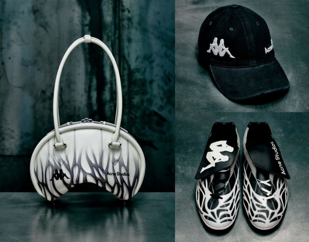 ACNE STUDIOS╳KAPPA聯名系列融合傳統運動美學設計元素與ACNE STUDIOS經典標誌性剪裁,靈感源自復古足球隊服。BOWLINA包款經過重新演繹,結合火焰圖案與雙品牌標誌;還推出印有品牌標誌棒球帽與一款運動風球鞋,及受足球裝備啟發的及膝運動襪。