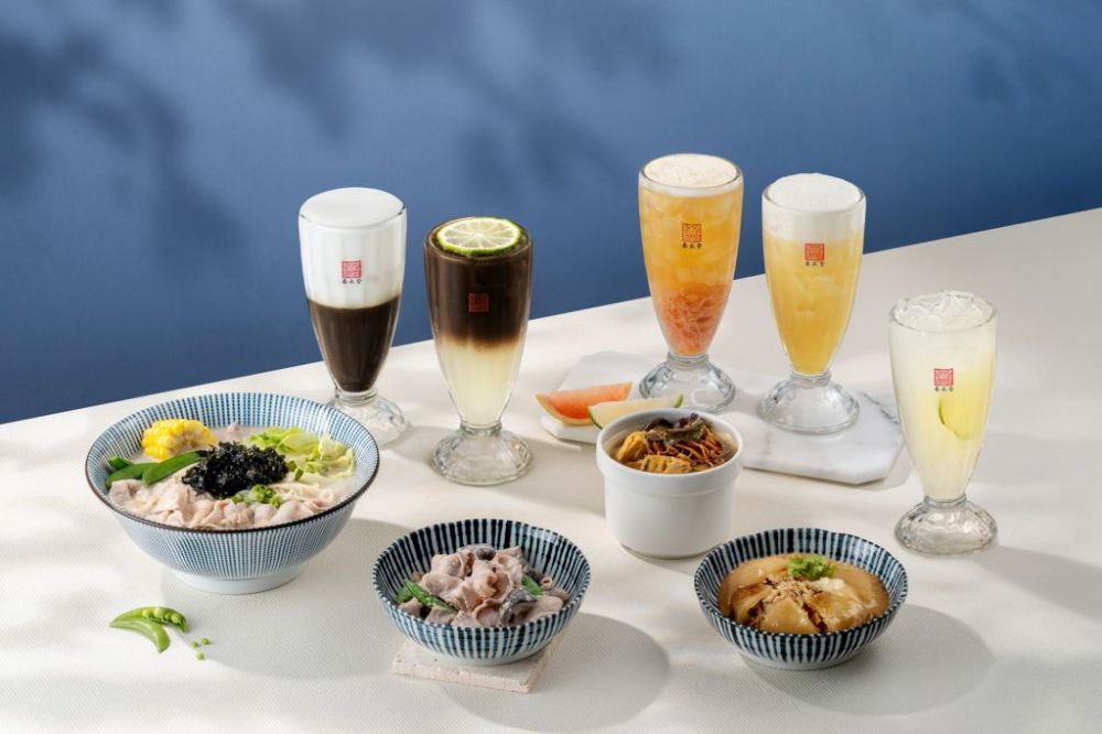 一口氣推出7款新飲品,焙茶西西里、焙茶拿鐵、焙茶仙草拿鐵、荔枝紅柚果茶、四季春紅柚蜜茶、四季春冰茶及檸檬蘆薈凍飲,各有不同風味。餐點則有胡麻拌豚五花、椒麻拌豚五花、金萱黃金蟲草雞湯、膠原胡麻白湯麵(豚),及加碼推出古早味蜜醬肉圓。