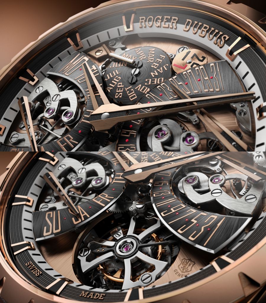 機芯巧妙整合萬年曆、三問報時、陀飛輪3項複雜功能,RD118機芯提供60小時動力儲存,雙逆跳顯示呈現信息,日曆指針優雅沿著半圓形刻度運行,在周期結束時立即回到零點。
