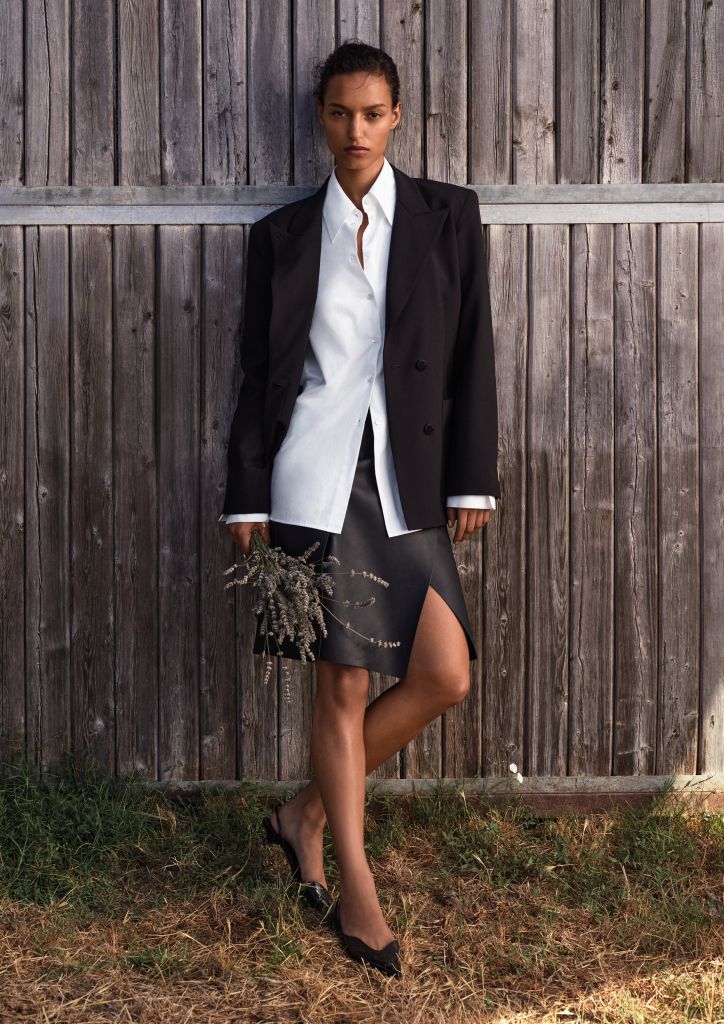 DAWN TO DUSK系列核心是一個精心策劃的多功能衣櫥,由基本款單品組成,將時尚層次感與永恆優雅完美融合。靈感源自初春柔和金色光芒與細膩陰影,系列展現溫暖色調,點綴陰影條紋與黃銅色金屬配飾,散發隨性高雅氣息。