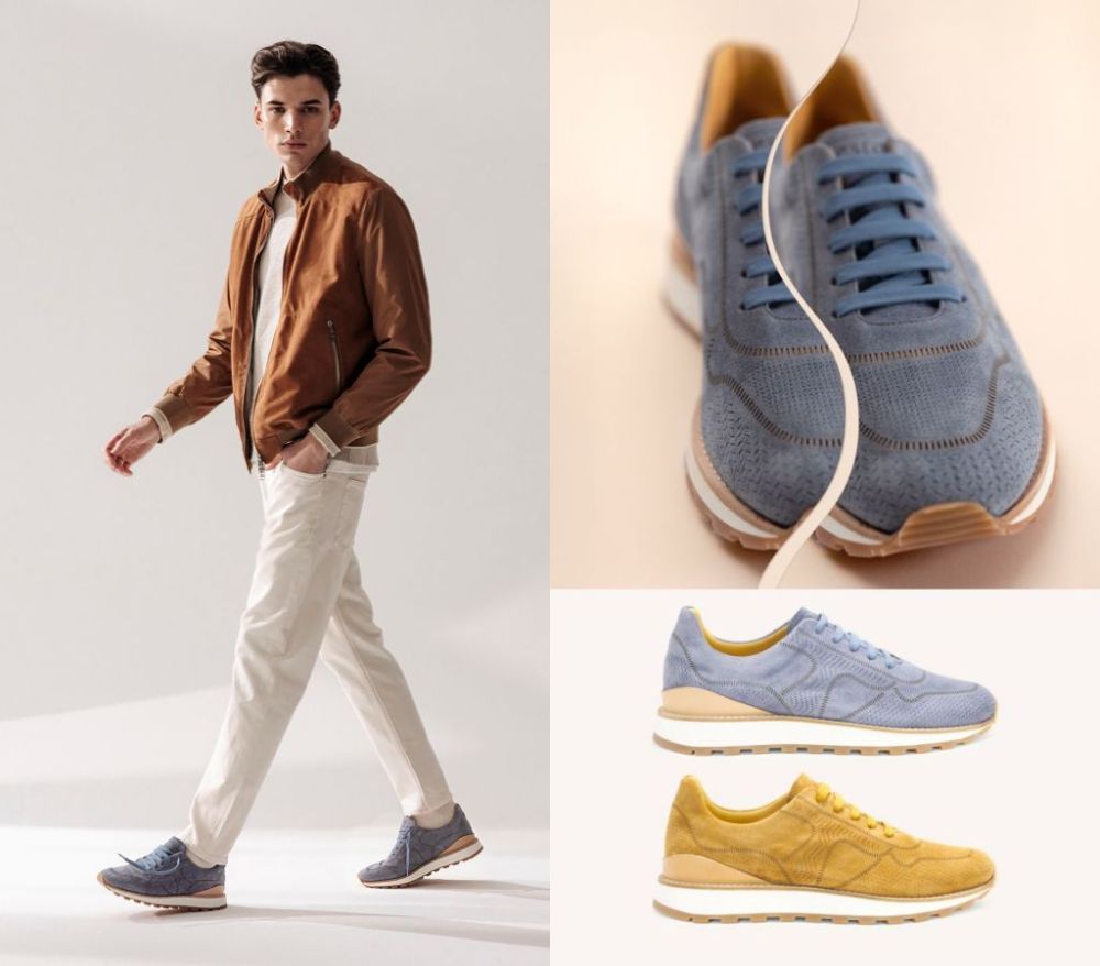 TESTONI MOENA運動鞋展現極致輕巧與靈活,以代表工藝手套式縫法BOLOGNESE CONSTRUCTION製作,採用特殊柔軟山羊皮內襯進行一體式縫製,使鞋履呈現宛若手套般貼合。搭配坦克紋理設計橡膠鞋底,更具抓地性與靈活行動力。