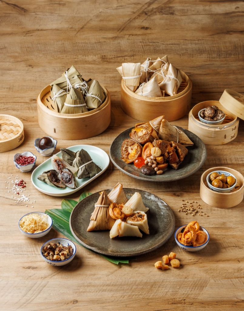 鮑魚櫻花蝦客家粿粽展現客家粽繁瑣細緻製作方式,餡料採用台灣精選黑豬絞肉、彈牙鮑魚、鮮甜干貝、香氣濃郁乾香菇、爽脆菜脯絲、鮮香東港櫻花蝦、清甜竹筍及香氣四溢紅蔥頭。紅豆沙水晶粽清款純素,西谷米製成晶瑩剔透外皮,口感彈潤飽滿,內餡選用滑順綿密烏豆沙,甜而不膩、口感綿密細緻。