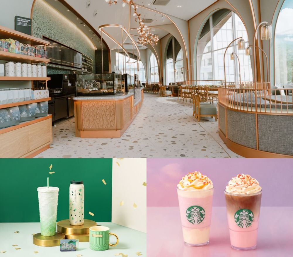 星巴克在地首間以星巴克女神外觀意象延伸打造夢幻門市星巴克康橋門市,由戶外延伸至室內,像女神帶領進入一段星巴克奇幻旅程。晨曦女神系列新品晨曦女神馬克杯、晨曦女神雙層玻璃杯與康橋星爍提袋以門市藝術牆面打造,及門市經典隨行卡設計概念皆以女神及綠洲為主題,將咖啡故事及細節呈現在壁畫。