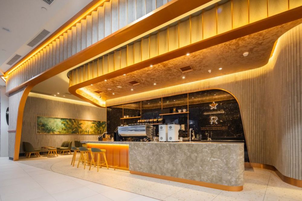 新店以流線型線條設計勾勒門市輪廓、吧檯空間,流動性線條,與金屬材質建立視覺節奏與秩序感。客席區空間搭配石材、金屬與木質家具精緻,帶來溫馨舒適感受,每個角落彷彿流露高貴優雅氛圍,每個細節都在講述品味與格調,沉浸於靜謐而富藝術感環境之中。