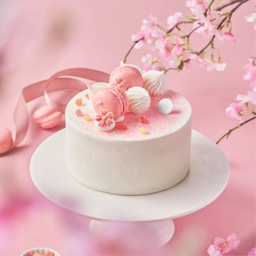 貴妃星砂蛋糕取材自貴妃果荔枝,將荔枝果汁與果肉製成果凍,夾入鬆軟原味戚風蛋糕,融合莓果乳酪奶餡、草莓與藍莓點綴,層層堆疊出酸香甘甜細膩口感。外層選用日本雪印鮮奶油覆蓋,裝飾玫瑰粉馬卡龍與星星糖,在白與粉輕柔粉色調中,營造如夢似幻節慶氛圍。