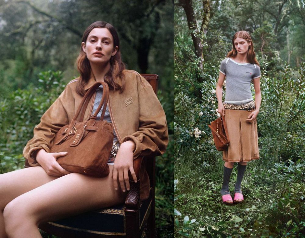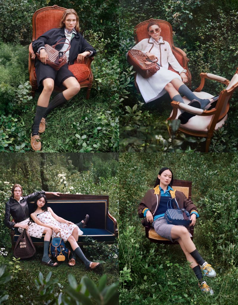 2025 MIU MIU L’ETE夏日系列走向戶外,置身一片鬱鬱蔥蔥空間,寧靜而充滿活力,漫漫夏日與溫和夜晚在靜謐沉思中度過。