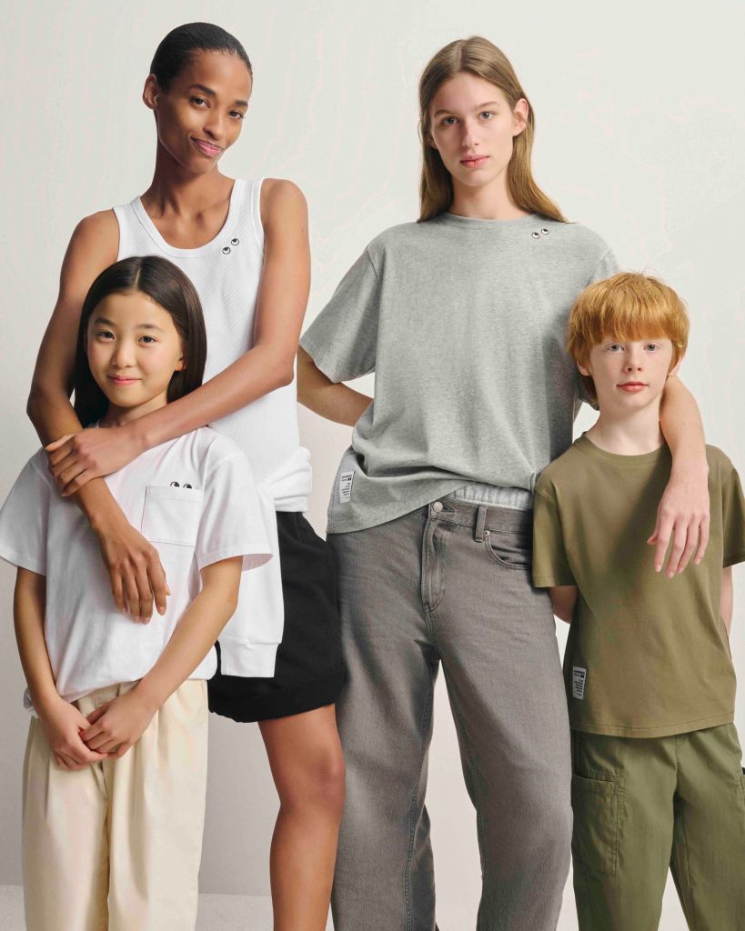 女裝系列由4款短袖及無袖設計版型T恤構成,每款皆經過細緻設計,從布料選擇、袖長比例到領口剪裁,處處展現對結構與細節高度講究,為日常穿著提供實穿具設計感單品。童裝系列以俏皮縫線設計與4種幽默可愛小眼睛圖案搭配多樣色彩,為孩子夏日穿搭增添趣味與驚喜。