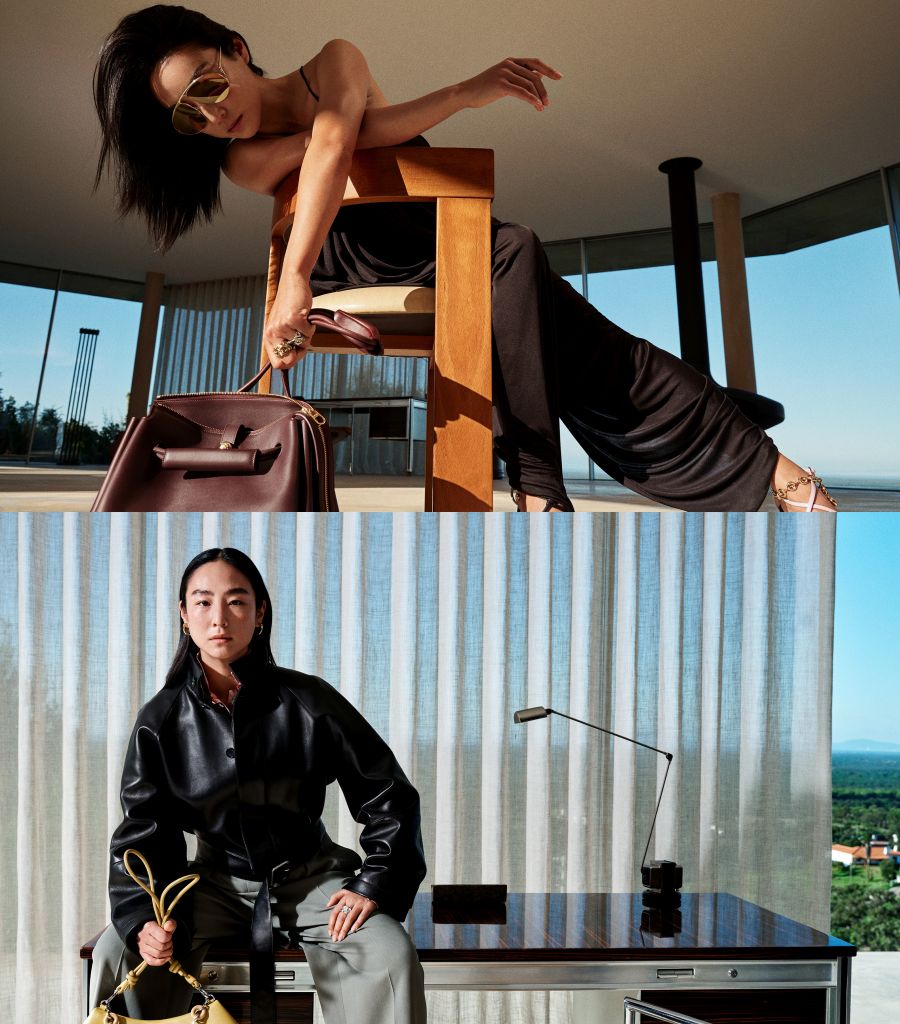 LOEWE全球品牌代言人楊冪與名演員Greta Lee葛莉塔.李、Josh O’Connor及Stéphane Bak在家居場境中亮相,大窗戶與玻璃牆是現代主義建築特徵,與廣告主角身上服飾同樣鮮明優雅。