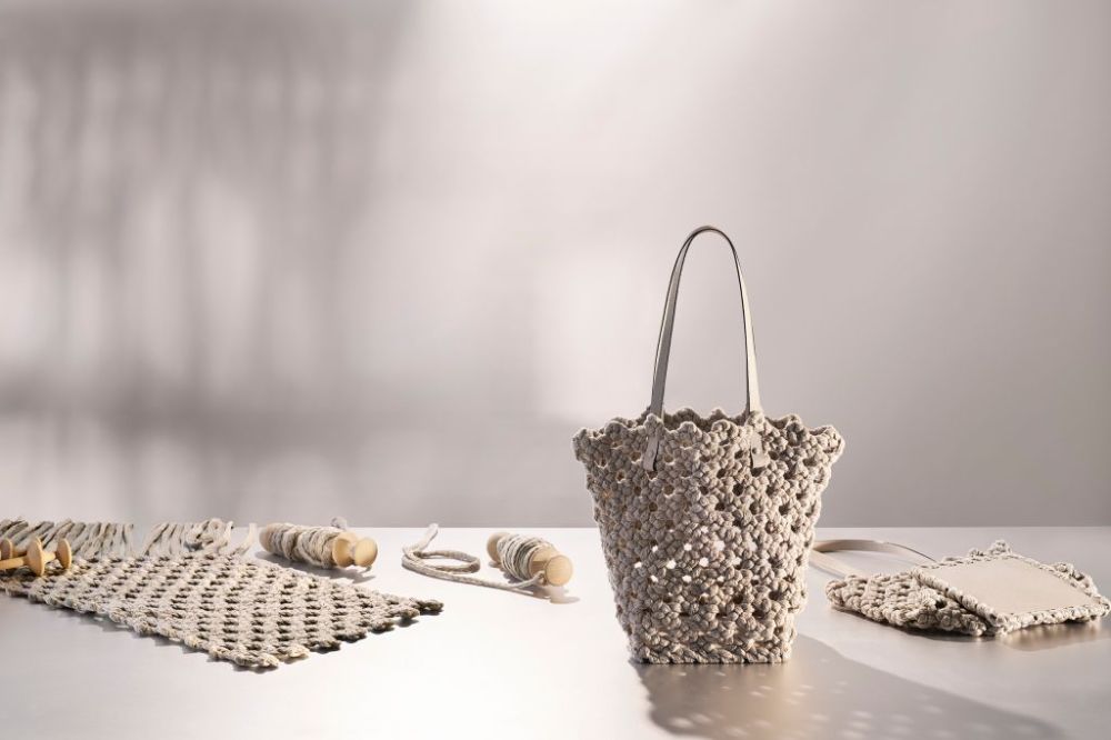 SPORTAMI VIA蕾絲工藝包款與UN PIZZO設計工作室合作,義大利文SPORTAMI VIA是"能隨身帶著走的包",結合MILLEPUNTE頂級小牛皮手柄、黑色漆面COSTA滾邊工藝等標誌性元素,運用義大利米蘭北部康圖CANTÙ城鎮古老手工梭編蕾絲技術,創造獨一無二立體織體。