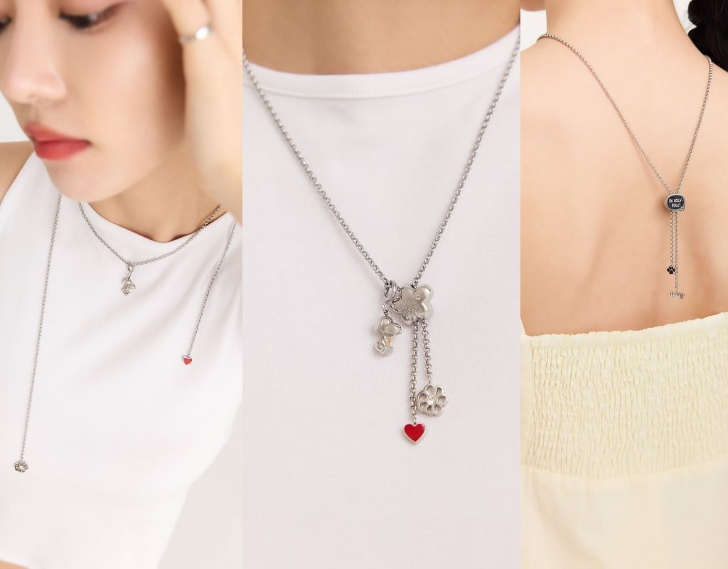 特別推出Y字純鋼項鍊可伸縮調整Y字結構鍊條,俐落單掛或層次垂墜多種戴法搭配,都能自由展現個人獨特品味。同步推出飾品盤、髮飾、鏡子、娃娃鑰匙圈、鏡面鑰匙圈盲盒、托特包等超萌週邊單品,從配件到穿搭一次SNOOPY到底。