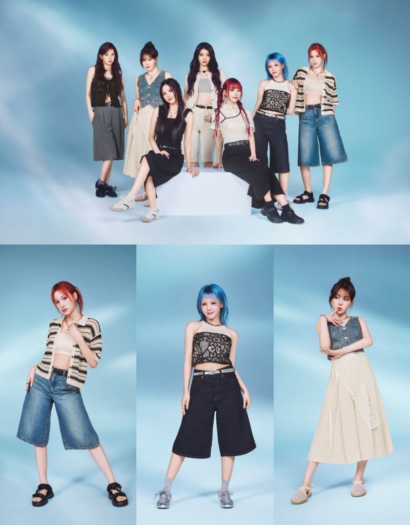 金采炫選擇垂墜感褲裙以同色系蕾絲綁帶片裙打造層次效果,搭配俐落牛仔背心甜美中帶點個性。江崎光以深藍色Jorts牛仔短褲搭配淺色bra-feel短版繞頸背心與黑色勾針編織領巾,簡約富層次,展現街頭感十足的女團穿搭。休寧巴伊葉穿上清爽風淺色Jorts牛仔短褲,搭配條紋針織罩衫與平口背心,輕鬆演繹可愛辣妹風。穿上SUMMER BOTTOM寫下時尚宣言!