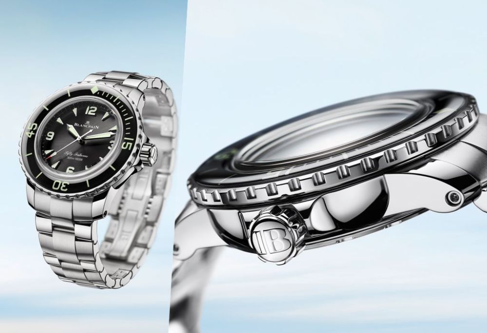 及之前亮面18K紅金錶殼搭配黑色珍珠母貝漸層錶盤與黑色錶圈、緞面磨砂鈦金屬搭配粉紅珍珠母貝漸層錶盤與同色錶圈2款版本。所有款式皆搭載放射狀飾紋錶盤與超大夜光時標,配有BLANCPAIN經典單向旋轉藍寶石錶圈,可選配橡膠TROPIC錶帶、航海帆布錶帶、 NATO 錶帶、鈦金屬或不鏽鋼鍊帶(緞面與亮光交錯處理)。