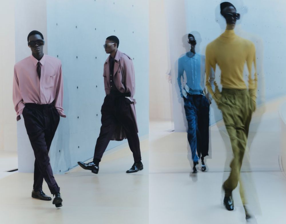 本季男裝系列致敬失落的一代藝術家:斯坦頓(Stanton)、安格斯(Angus)、埃利斯(Ellis),他們為無聲慾望塑形。也致敬1974年尋求避世的伊夫.聖羅蘭先生(Yves Saint Laurent),只為破繭新生。