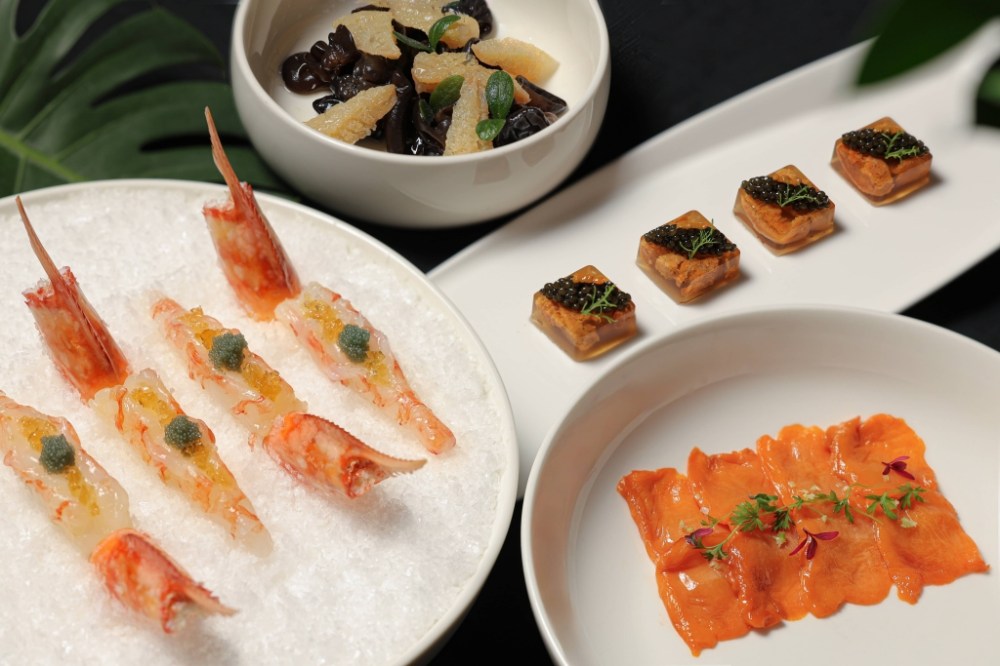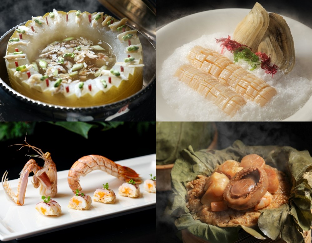 中餐廚藝總監鄔海明以粵菜功夫融合季節食材,嚴選瀨尿蝦、現流海蝦、赤貝、蜇頭、象拔蚌與北海道海膽等高級海味,設計6道清涼開胃冷盤佳餚,同步推出"八寶冬瓜盅"與"海味荷葉飯",打造一道道風味層次豐富、適合夏季共享的港式盛宴。