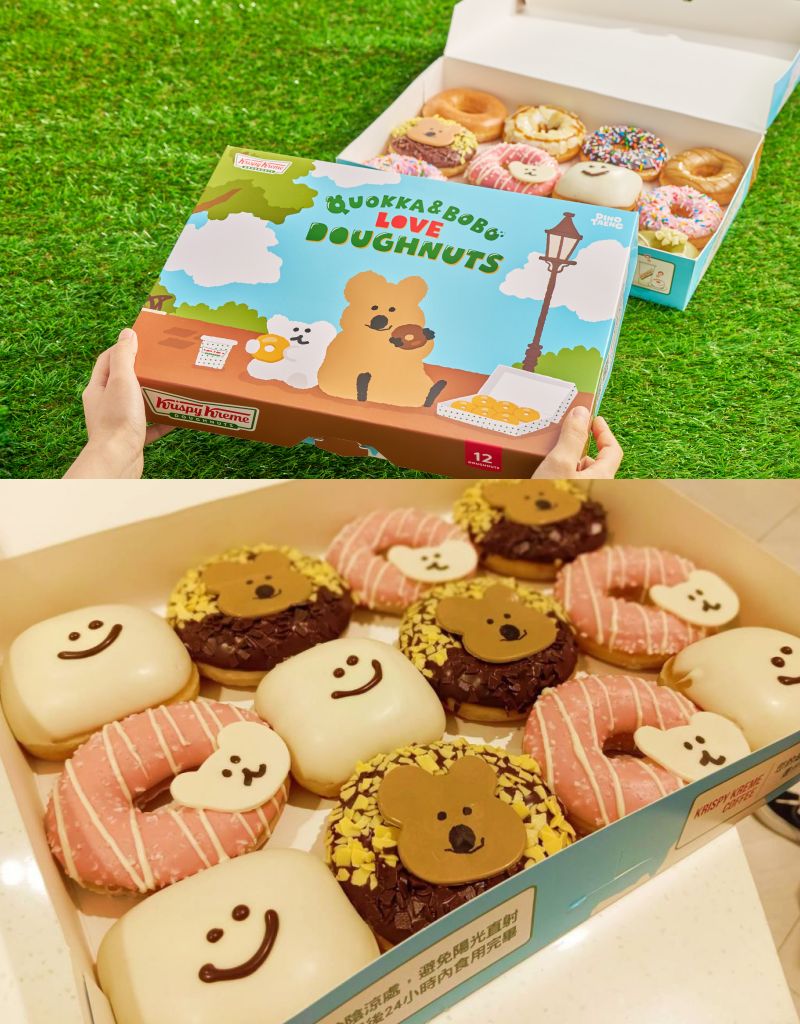 美式甜甜圈KRISPY KREME攜手韓國超人氣DINOTAENG呆萌町推出滿滿療癒感全新企劃”QUOKKA&BOBO LOVE DOUGHNUTS”,超可愛角色結合可愛甜甜圈,度過最甜蜜的快樂時光!