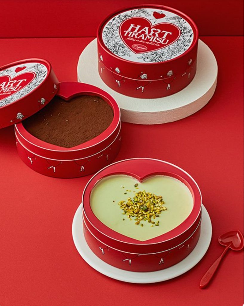 每盒HART TIRAMISU表面皆覆蓋脆皮愛心巧克力,需使用專屬愛心湯匙輕敲打開增添甜點時光樂趣,象徵"打開心意"的溫暖儀式。濃醇義式濃縮咖啡、柔滑馬斯卡彭起司與香甜可可完美融合,一口沉浸幸福滋味。HAVE A HARTY TIME!