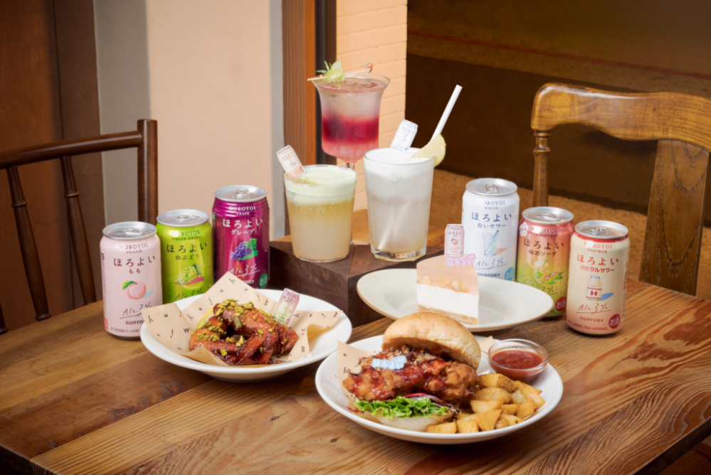 微醉梅酒醬燒雞翅與搖曳梅醬板栗炸雞堡靈感來自梅酒蘇打、夢幻粉色もも果凍⽣乳酪蛋糕以白桃沙瓦為靈感擁有3種口感。HOROYOI雙葡萄果實QQ沙瓦果汁香氣濃郁、HOROYOI乳酸沙瓦多多奶蓋包種茶優雅茶香結合乳酸風味,及升級版清爽感十足HOROYOI白色沙瓦可爾必思奶蓋氣泡飲等3款大人系專屬特調。
