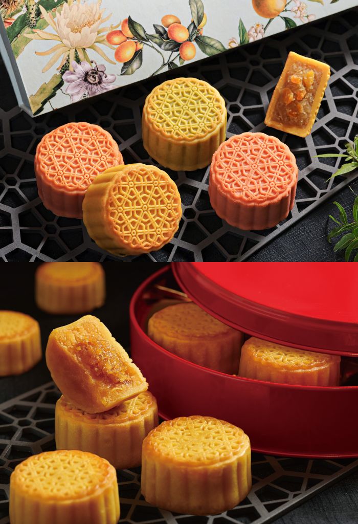 ”醉月”廣式月餅禮盒推出豆沙蛋黃、培香鐵觀音、蓮蓉松子、香醇芝麻、棗泥核桃及桂圓紅棗等6款口味,以經典傳承雅緻木盒包裝展現特色。”花月”港式奶黃酥與蛋黃酥禮盒以霧面金色鐵盒裝載8顆師承香港麗晶酒店師傅技藝經典奶黃酥與豆沙蛋黃酥。