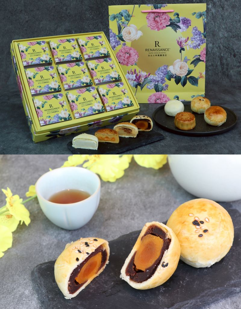 烏豆沙蛋黃酥內餡採用台灣在地萬丹紅豆慢燉熬煮,包入傳統紅土工法醃製鹹鴨蛋黃,經高溫烘烤鎖住油脂香氣,口感香酥濕潤。廣式月餅奶黃流心特選屏東鹹蛋黃與甜度較低海藻糖製成香醇奶黃流心餡,餅皮使用葵花油與低鈉沙漠湖鹽;輕切開金黃色奶黃餡如熔岩般緩緩流出,口感香醇濃鬱,甜而不膩。