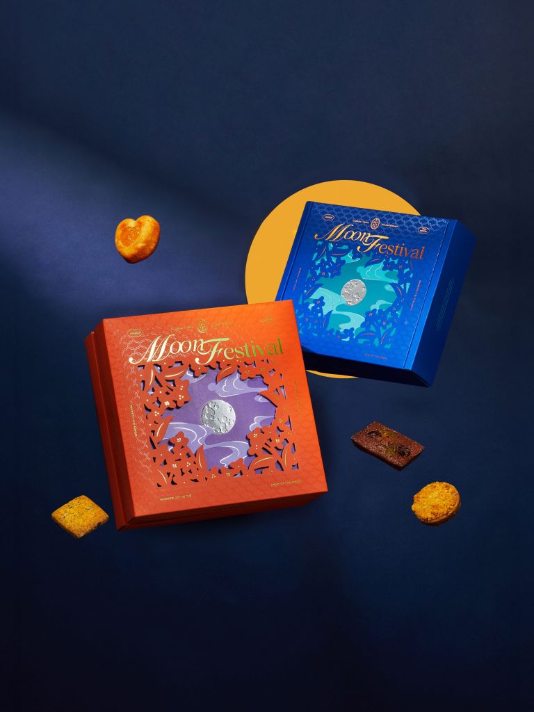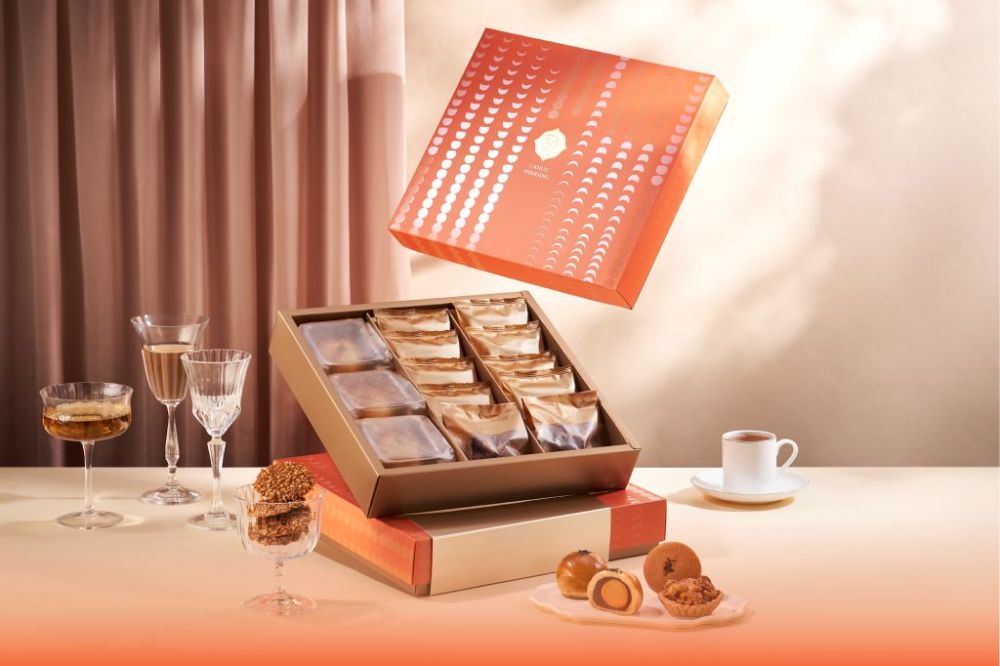 2款禮盒延續純粹美好風格,搭配中秋限定甜點私藏蛋黃酥,層層酥香、鹹甜交融。外盒設計以亮眼橘為主調,採3種燙金工藝層層疊映,在燈光下閃耀月光般細緻光澤,低調奢華中藏著設計巧思,象徵中秋祝福圓滿與深意。