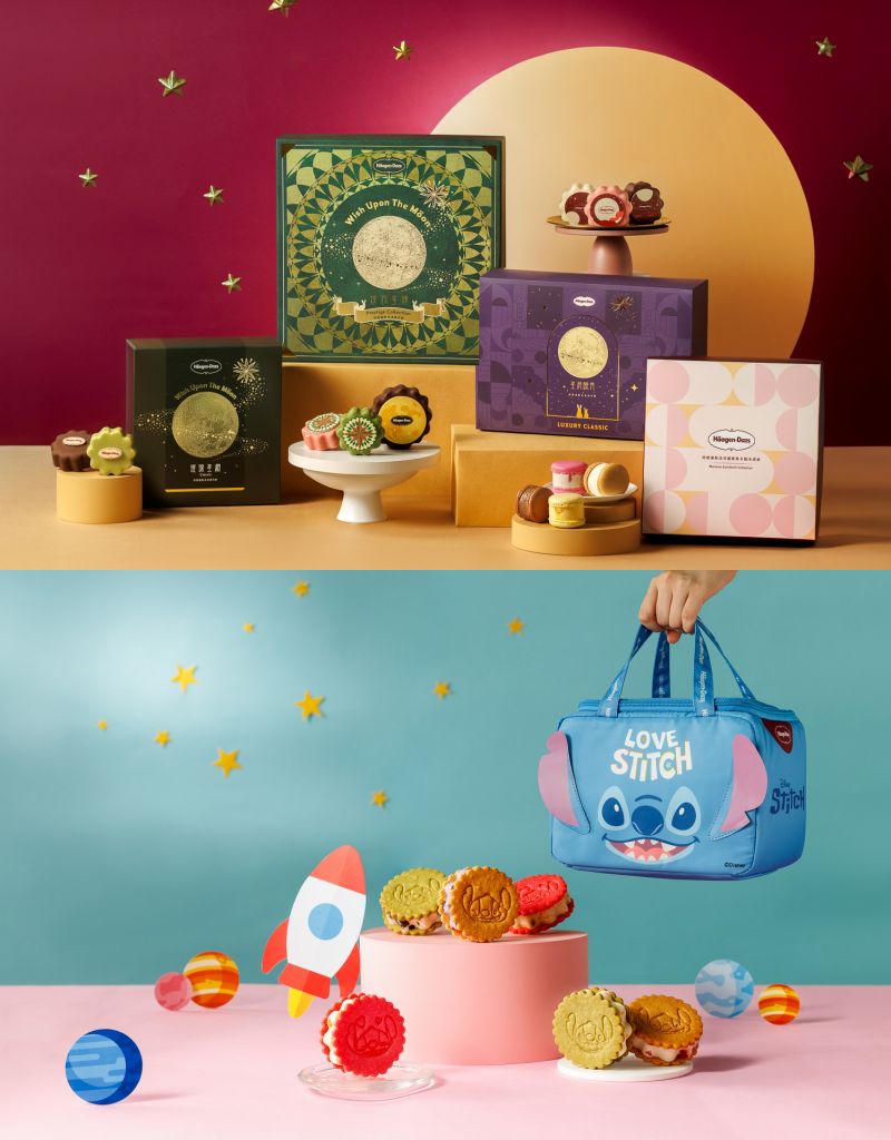 HÄAGEN-DAZS哈根達斯以極致祝福,用心傳遞為主題,精心推出5款中秋冰淇淋月餅系列禮盒,每款禮盒皆以真材實料冰淇淋月餅與中秋滿月意象設計打造而成,並推出中秋限定史迪奇造型莎布蕾冰淇淋,為中秋增添些許萌趣能量。