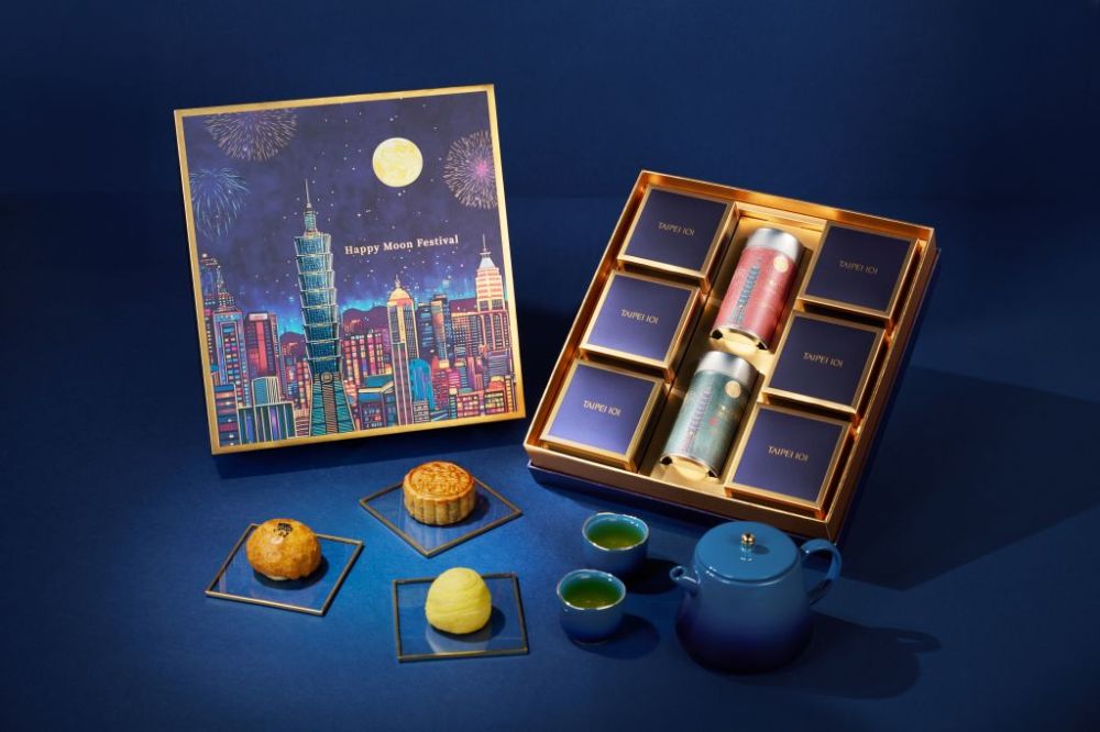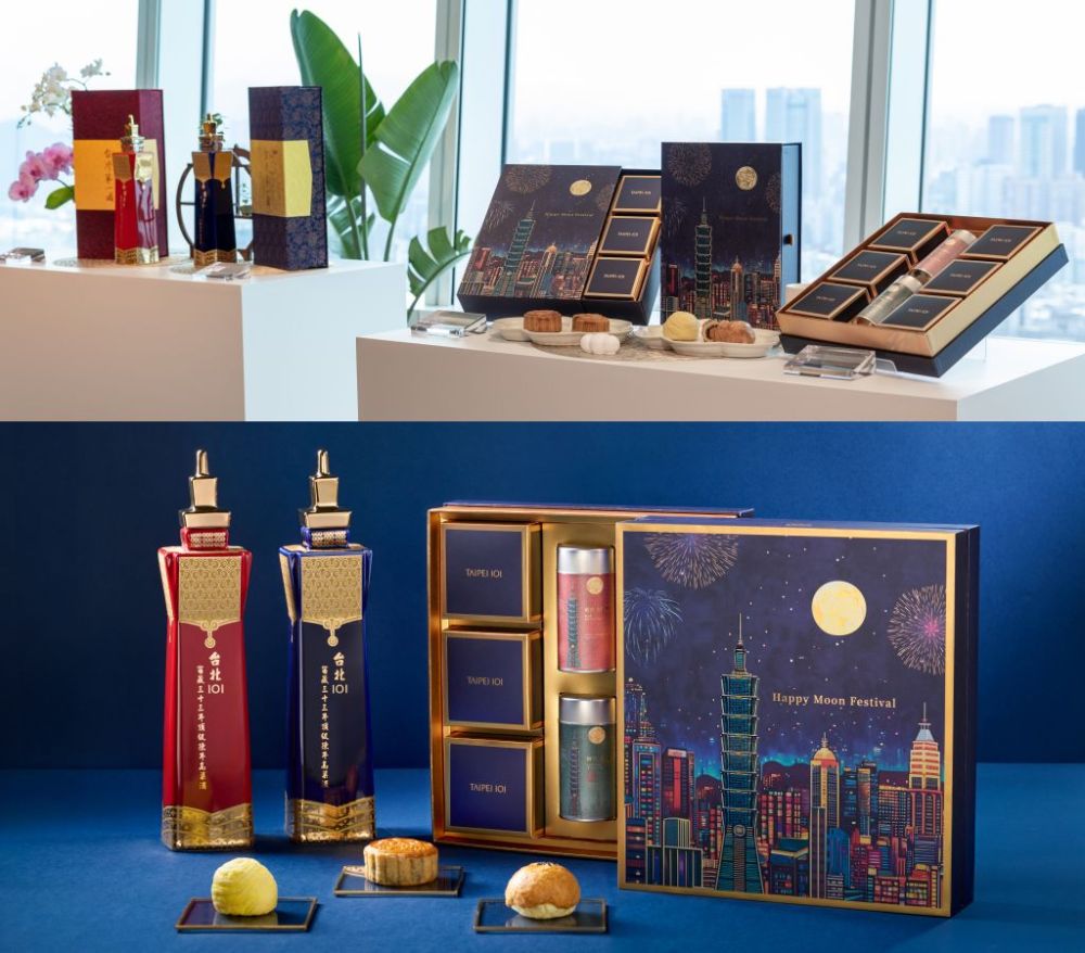 台北101推出2款中秋禮盒,以中秋夜景為靈感,採用獨特插畫風格,融合台北101、繽紛煙火、皎潔明月與現代都市風貌,透過復古環色調與金/銀箔質感細節,營造溫馨又華麗的過節氣氛,展現節慶感與藝術品味兼具的視覺饗宴。