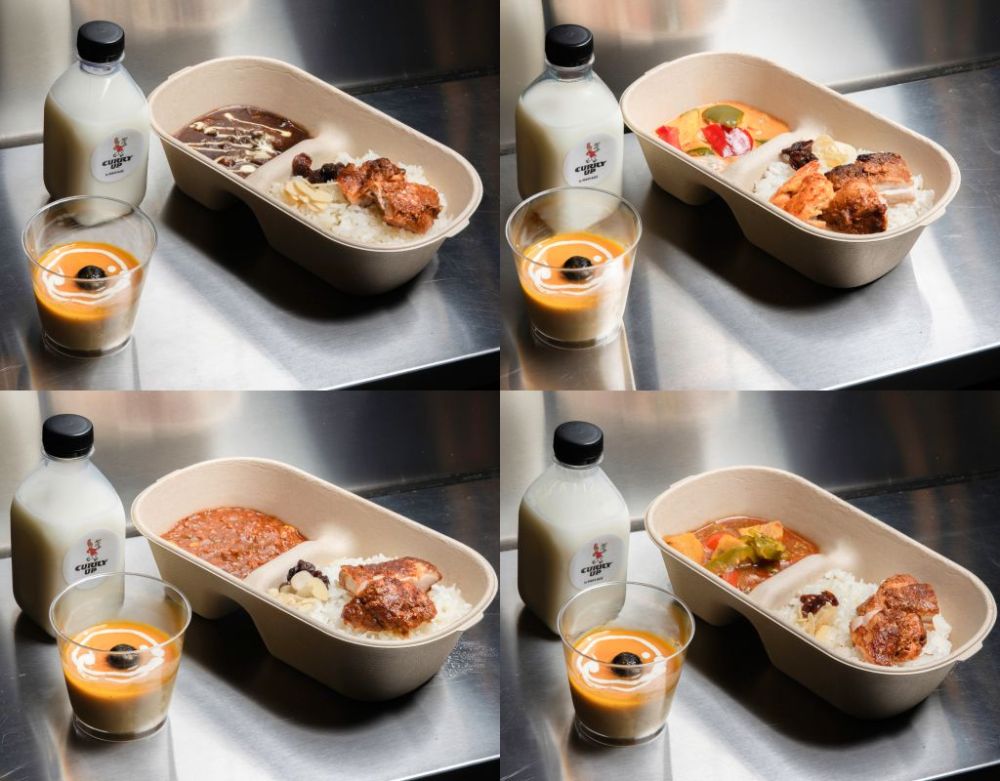 快閃餐車現場提供牛筋咖哩、蝦紅咖哩(台灣限定版)、雞末咖哩及蔬食咖哩4款CURRY UP經典餐點,每道皆使用標誌性熟成咖哩醬搭配白飯與配菜,體現NIGO簡單但講究的風格哲學。