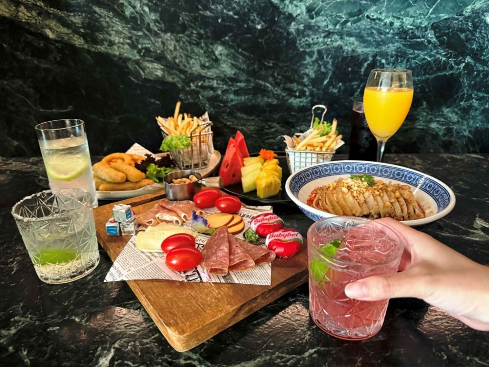 弈夢紅樓推出川味口水雞、薯條搭綜合水果拼盤、經典酥炸拼盤、綜合乳酪火腿盤4道夜酌小食,川味口水雞辣中帶麻、香氣濃郁,入口瞬間刺激味蕾。經典招牌特調"金門海風"氣泡輕盈帶出鹹甜層次,酒體呈現透明粉紅色,清爽中透著浪漫氛圍。"紅色驚喜"以汽水甜香平衡紅酒丹寧澀感,甜潤與果香交織,帶來輕盈而易飲風味,暢享屬於自己的風味時刻。