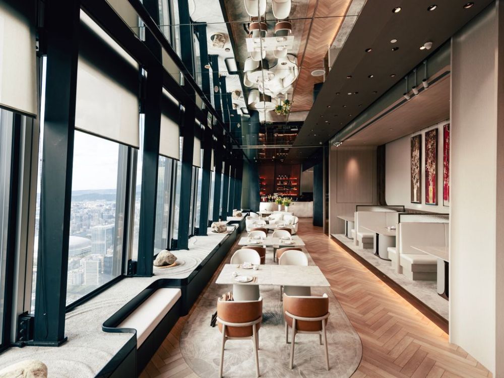 川雅潔淨雅致用餐空間將台北101與市內景色盡收眼底。套餐涵蓋川菜多種風格,展現廚房團隊嫻熟技藝與無窮創意。