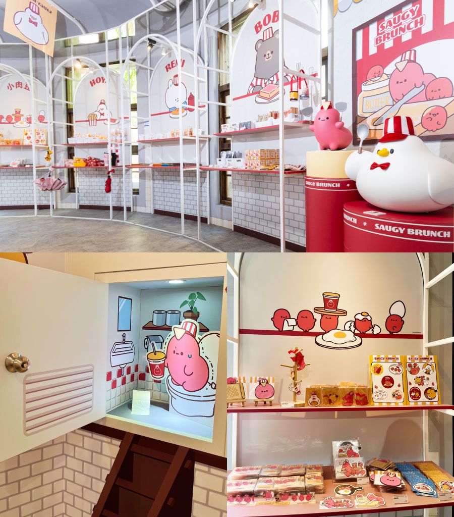 快閃店除了Saugy腸太郎、Hoya好鴨跟Dinu狗狗會現身,全新角色小肉豆也首次亮相,以 Saugy腸太郎主廚最得力料理小幫手身份驚喜登場。而Saugy腸太郎喝完大冰奶後,還會出現傳說中的神秘腸胃儀式,聽說躲在隱藏的彩蛋景點廁所裡面沒出現。