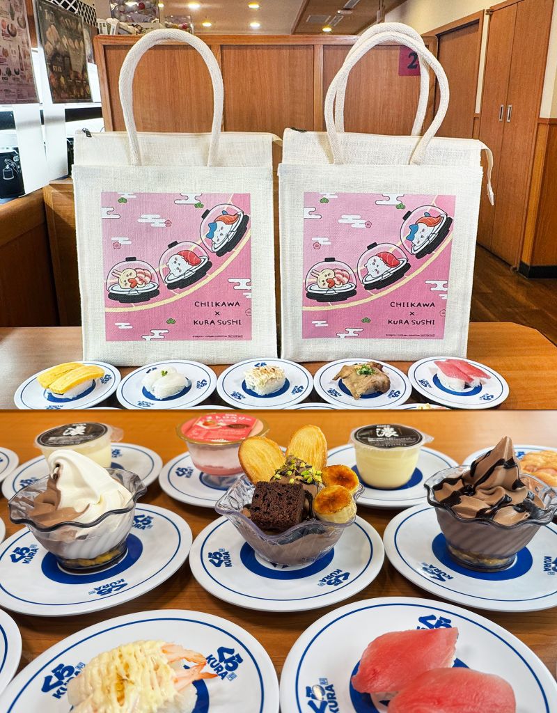 藏壽司╳吉伊卡哇造型扭蛋結合吉伊卡哇10大角色設計,包含5款壽司造型立體吊飾、8款壽司迴轉帶徽章與5款鮮度君磁貼2件套,獨家扭蛋動畫同步開播。快衝5間限定佈置店跟吉伊卡哇同樂,合照打卡上傳還能抽限量保冷袋。