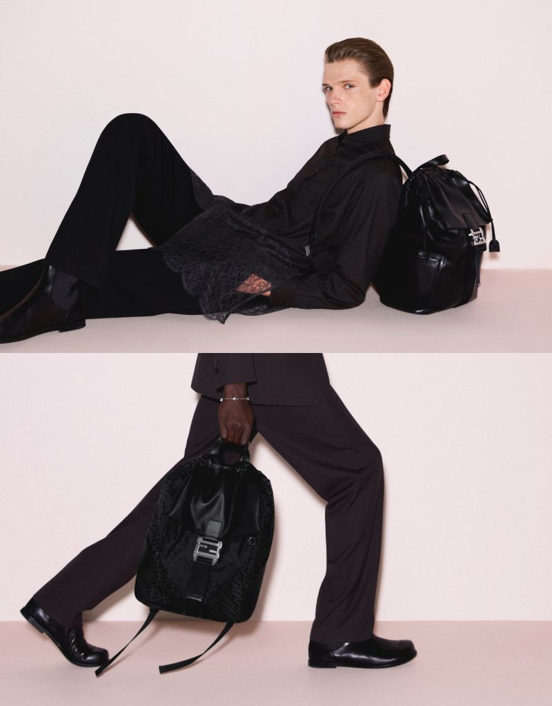 全新男仕時尚包款FENDI Flux背包外觀設計以皮革手柄與抽繩開口打造輪廓,抽繩飾以特別訂製繩結與FF細節,搭配可調式背帶與加厚織帶,確保肩背時舒適體驗,為新一代男士重新詮釋經典工藝。