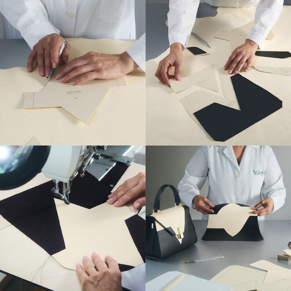VALEXTRA INTARSIA系列線條俐落結構、弧面柔和曲線,透過精湛皮革拼接工藝凝鍊包款,是對米蘭建築美學的當代詮釋,也是VALEXTRA一以貫之工藝信念,將生活轉化為藝術,將藝術融入日常。